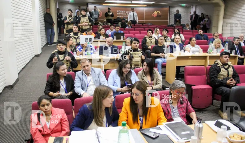 En la sala también se pudo ver a la jueza Dolly Fernández, a las defensas de los acusados, a las querellas, al equipo del Ministerio Público Fiscal y el sector donde se ubican los 12 jurados, quienes escuchan las audiencias que se desarrollan aproximadamente desde las 9 hasta las 17.