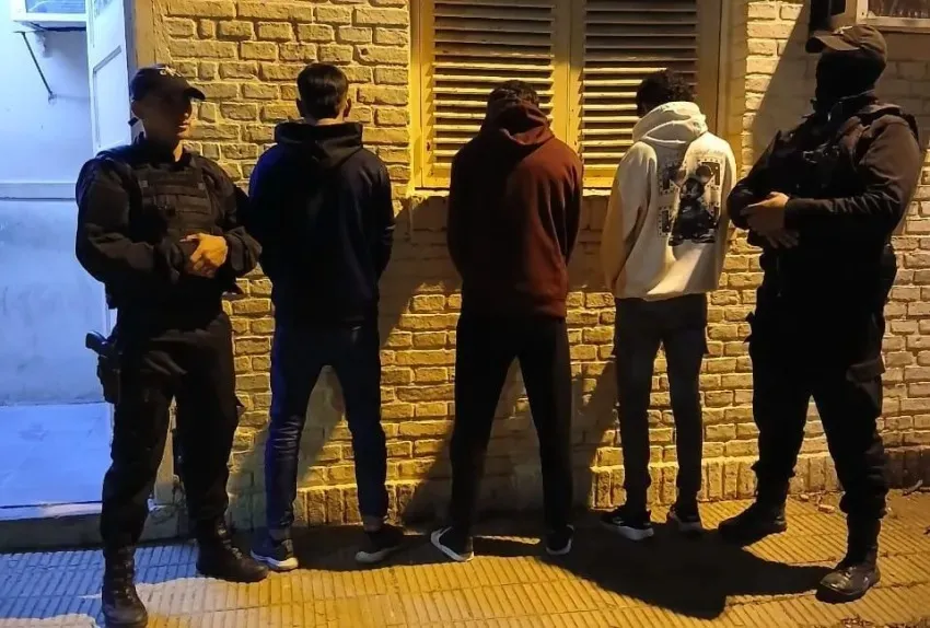 Finalmente, cerca de las 2:20 de la madrugada, personal del Grupo C.O.M. interceptó a tres jóvenes de 20 y 21 años en calles 000 y 35 del barrio San Martín, todos domiciliados en el barrio Santa Mónica. Durante la intervención, los efectivos procedieron además al secuestro de una motocicleta marca Appia, que carecía de carenado y espejos retrovisores, y presentaba numeración visible en cuadro y motor.