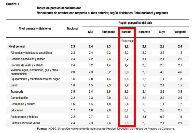 Por la tarde, el INDEC publicó los índices de inflación del mes de octubre y la región nordeste volvió a estar entre las más bajas a nivel nacional. El NEA registró un índice del 2,2% en dicho mes y, tras siete meses, superó el dos por ciento (2,7% en abril).