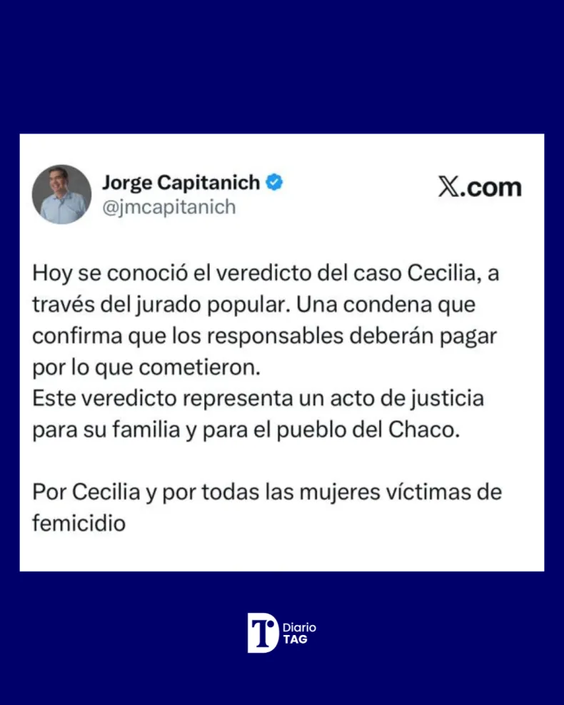 Ahora, con el veredicto del jurado y a la espera de las condenas, Capitanich publicó en X: "Una condena que confirma que los responsables deberán pagar por lo que cometieron".