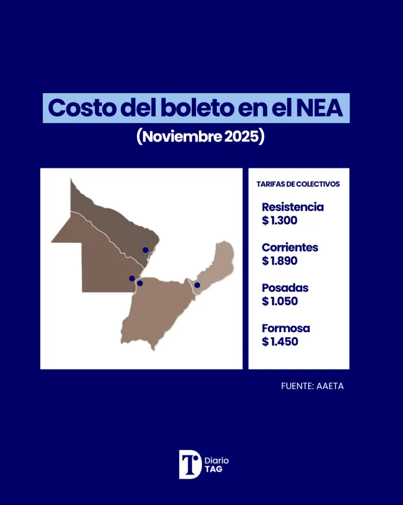 En la región del NEA hay precios dispares. Posadas mantiene el valor más bajo, sin aumentos aplicados durante este año, con un costo de $1050. A su vez, Formosa y Corrientes presentan un boleto de mayor costo: $1450 y $1890, respectivamente.