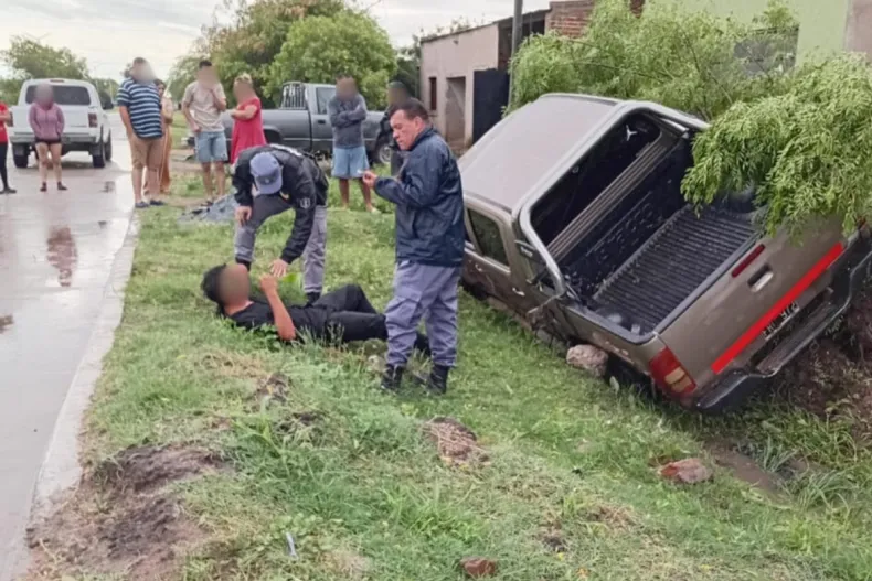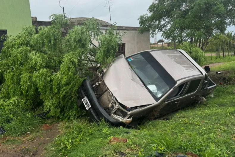 En las imágenes se ve que la camioneta venía a gran velocidad y el momento en que pierde el control, saliéndose de la calzada. Pasó muy cerca de una vivienda, pero detuvo su marcha al chocar contra un árbol a la vera del camino. El vehículo sufrió notables daños materiales.