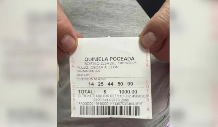 El ganador había registrado su apuesta en la Agencia 119 de Oscar Puljiz, ubicada en San Martín al 425 de Quitilipi. Sus números de la suerte fueron el 14, 25, 44, 50 y 99, producto de una combinación manual.