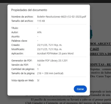 Y agrega: "Asimismo, según puede observarse en el Boletín 6661 del 03.04.2025, el precitado Boletín 6625 del 12.04.2025 se encuentra entre todas las Resoluciones adoptadas y aprobadas por el Comité Ejecutivo. De lo expuesto, claramente se advierte que el Boletín 6625 y los temas en el tratados corresponden al 12 de febrero de 2025, tal como se encuentra publicado en la página oficial de la Asociación del Fútbol Argentino".