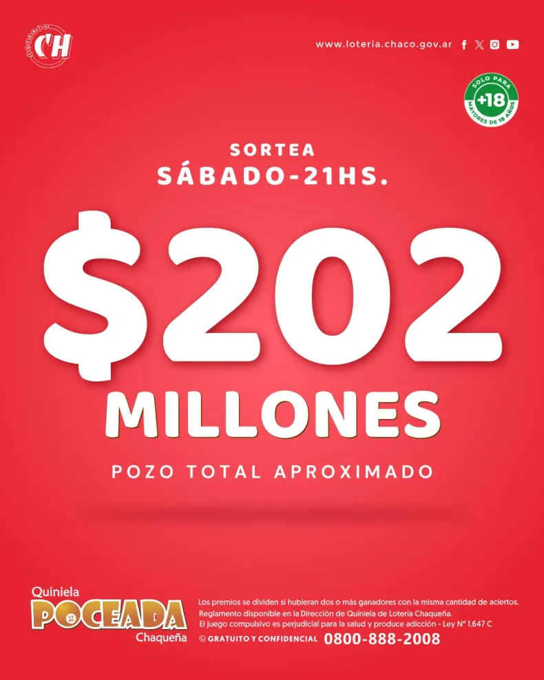 La Poceada volverá a sortearse este sábado 29 de noviembre de 2025 a las 21 horas, con un pozo estimado en más de 202 millones de pesos.