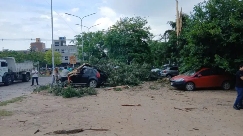 En un viernes que prometía ser caluroso desde el principio, sorprendió con un cielo totalmente gris que comenzó con un fuerte rayo impactado en el Pediátrico, el cual provocó la caída de árboles y daños en vehículos terminó con fuertes lluvias en varios sectores de la provincia.