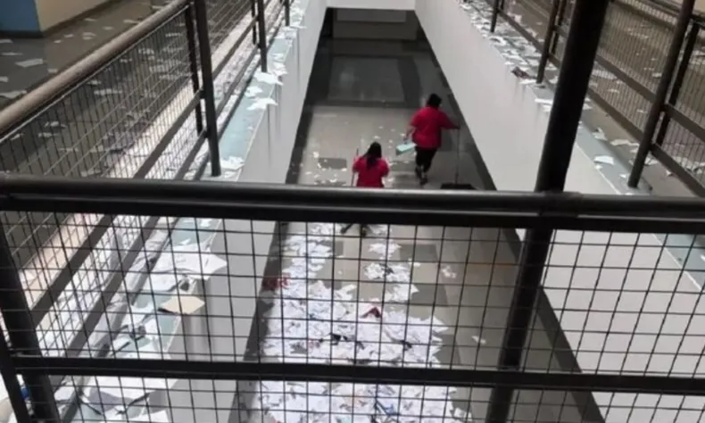 El episodio se viralizó luego de que circularan videos del jueves pasado, donde se ve a los estudiantes arrojando hojas, carpetas y papeles en pasillos, escaleras y patios del establecimiento perteneciente a la Universidad Champagnat. Ante esta situación, la institución aplicó 20 amonestaciones por alumno y dispuso un Plan de Trabajo de Reparación y Recapacitación Escolar, que incluye tareas comunitarias, acciones pedagógicas, limpieza, reparación de espacios y un coloquio obligatorio para reducir las sanciones. Las familias deberán afrontar los costos de los arreglos.