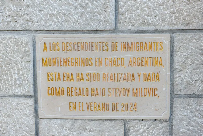 El gumno fue construido con auténtica piedra montenegrina, por el maestro artesano Bajo Milović, originario de Banjani. Movido por su profundo amor por la patria y por la diáspora, decidió donar esta obra a los montenegrinos de América Latina.
