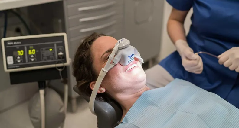 El óxido nitroso, también conocido como "gas de la risa", se utiliza para reducir la ansiedad y facilitar la atención en consultorio, especialmente en pacientes con fobia dental, personas con discapacidad o neurodivergencias, o en quienes postergan tratamientos debido al miedo.