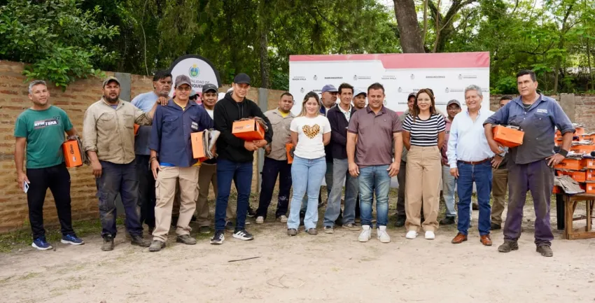 La intendente Magda Ayala, encabezó una nueva entrega de indumentaria laboral al personal de la Secretaría de Servicios Públicos, destinada a los equipos de macheteo, albañilería, taller, plomería y zanjeo.