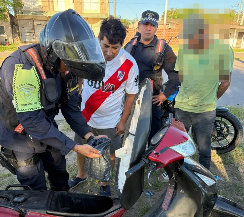 Por orden de la Fiscalía de Investigación Antidrogas Nº 1, se dispuso el secuestro de la droga, la motocicleta y la aprehensión del sospechoso, quien quedó notificado por presunta infracción a la Ley 23.737 de Estupefacientes.