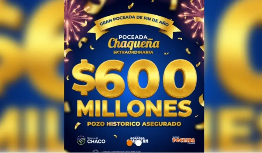 La Poceada Chaqueña Extraordinaria se jugará el próximo sábado 27 de diciembre con un impactante pozo récord de 600 millones de pesos garantizados al primer premio, el más alto en la historia del juego.