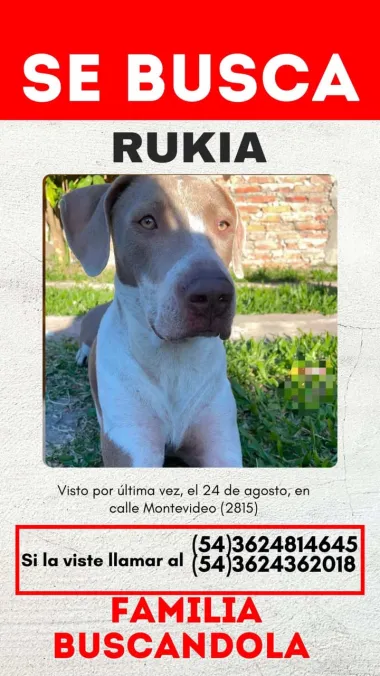 "Se nos perdió el 24 de agosto a las 22:30, cuando ella sale a hacer sus necesidades y no llegó más a casa. Sabemos que alguien la puede llevar a tener porque es muy buenita, pero nosotros la extrañamos", comentó una de sus dueñas en contacto con Diario TAG.