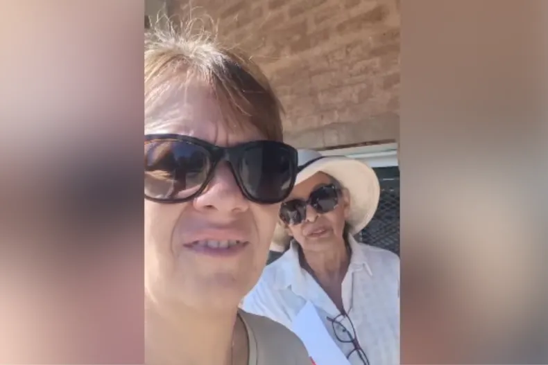 Tomljenovic explicó que encontraban en el lugar desde las 8 de la mañana, aproximadamente, para concretar una entrevista con los tres sentenciados por el femicidio de Cecilia Strzyzowski. Tras una hora de espera, aún no habían logrado ingresar. "Estamos bajo el rayo del sol, hemos pedido hablar con el responsable y todavía no nos atienden", señala en el vídeo.