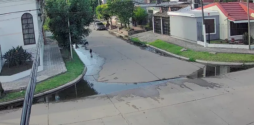 En uno de los videos que llegó a la redacción se puede observar cómo los perros del lugar caminan sobre el agua negra. Además, los vecinos dejaron en claro que la pérdida también afecta a un colegio que se encuentra a poca distancia del lugar.