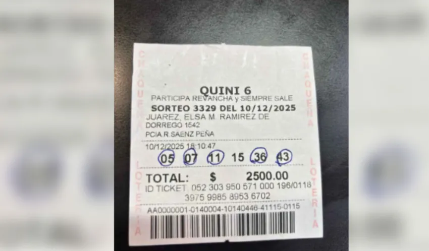 Una jubilada oriunda de la ciudad de Presidencia Roque Sáenz Peña cobró un premio superior a los 8 millones de pesos tras resultar ganadora en el sorteo del Quini 6 realizado el pasado miércoles 10 de diciembre.
