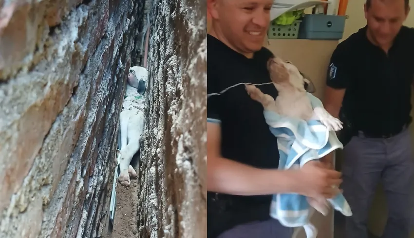 El hecho ocurrió alrededor de las 9:30, cuando el personal policial fue alertado por un pedido de auxilio. Al arribar al lugar, los uniformados se entrevistaron con una mujer de 26 años, quien explicó que su perro, un Dogo Argentino de pelaje blanco y apenas tres meses de vida, se encontraba jugando en el fondo del domicilio cuando cayó accidentalmente entre los muros, quedando imposibilitado de salir por sus propios medios.