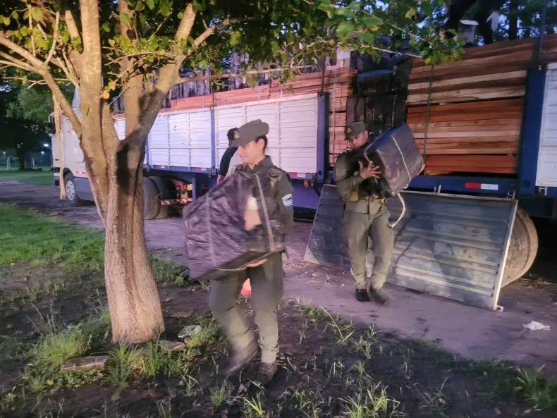 Durante la inspección documentológica en el Paraje Lapachito, los uniformados advirtieron que la lona que cubre el semirremolque presentaba ciertas anomalías (cortes y cambios de argollas), lo que levantó sospechas frente al traslado de una posible carga ilegal.