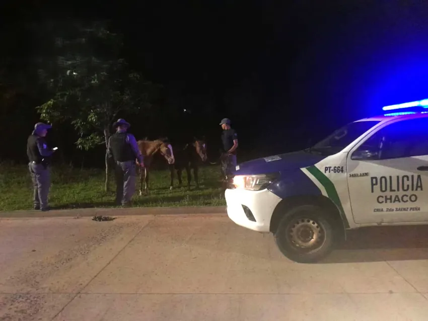 Ante la situación, se dio intervención a la Policía Rural, que trasladó a los caballos involucrados —uno de ellos herido— al predio de la Sección Rural Sáenz Peña, donde se procedió a la verificación de marcas y resguardo de los animales.