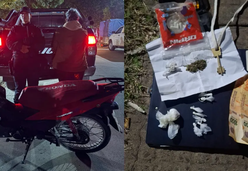 Durante el patrullaje, los efectivos demoraron una motocicleta Honda Wave 110 cc, conducida por una mujer de 27 años, quien no contaba con la documentación del rodado. Como acompañante circulaba un joven de 18 años, quien tenía entre sus prendas dinero en efectivo, documentación ajena y varios envoltorios con sustancias sospechosas.
