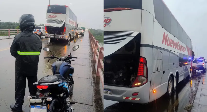 El tránsito en el puente interprovincial General Manuel Belgrano presenta serias demoras debido a la combinación de un colectivo de larga distancia detenido por una avería mecánica, lo que dificulta la circulación normal en la traza.