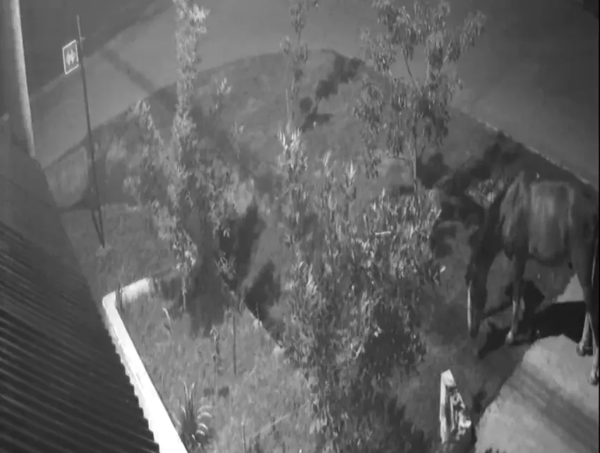 Ante la denuncia, personal policial se dirigió al lugar y revisó las imágenes de las cámaras de seguridad de la zona. Fue allí donde se esclareció la situación: una de las filmaciones mostró a un equino que se acercó a pastar en las inmediaciones y, de manera accidental, enredó el bozal en el hierro del contenedor, llevándoselo arrastrado al retirarse.