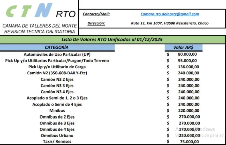 Según valores de referencia consultados a la fecha, los costos son los siguientes: automóviles particulares, $80.000; pick up, utilitarios y vehículos todo terreno, $95.000; taxis y remises, $75.000; y camiones u ómnibus de gran porte, de tres ejes, hasta $270.000.