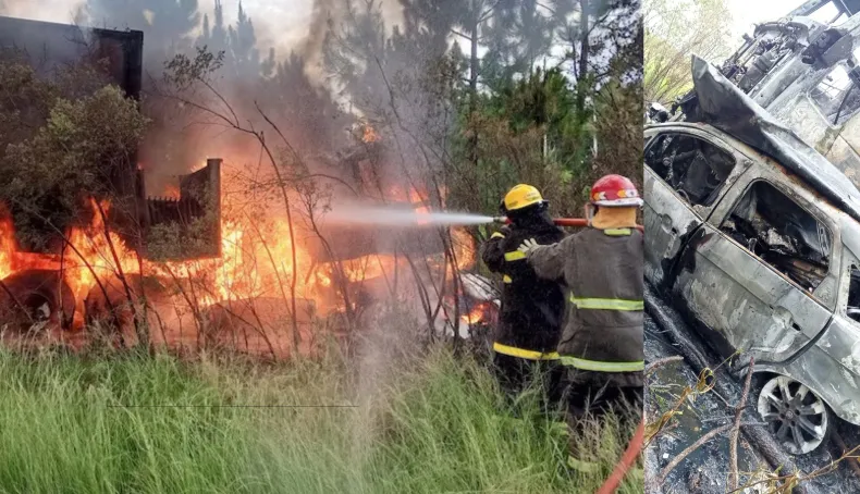 Bomberos Voluntarios de Santo Tomé trabajaron intensamente para controlar las llamas, pero al extinguir el fuego hallaron los cuerpos sin vida de las víctimas, quienes no lograron salir del vehículo ni ser rescatadas a tiempo.