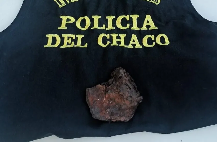 A partir de las tareas investigativas, los agentes localizaron un domicilio del barrio La Curva, donde secuestraron una pieza pétrea de entre 10 y 15 centímetros, de color oscuro y con un peso aproximado de 580 gramos, cuyas características serían compatibles con un meteorito.