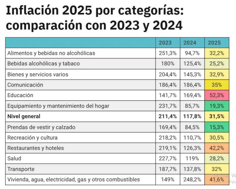 El balance final de 2025 muestra así una inflación más baja en términos generales, pero con diferencias marcadas entre sectores que impactaron de manera desigual en el bolsillo de los consumidores.