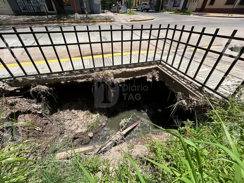 Según relataron los vecinos, son dos los pozos. Uno de ellos "tiene casi un metro; se puede ver el agua corriendo por debajo del asfalto" y se encuentra delimitado con vallas pertenecientes a una vivienda del lugar.