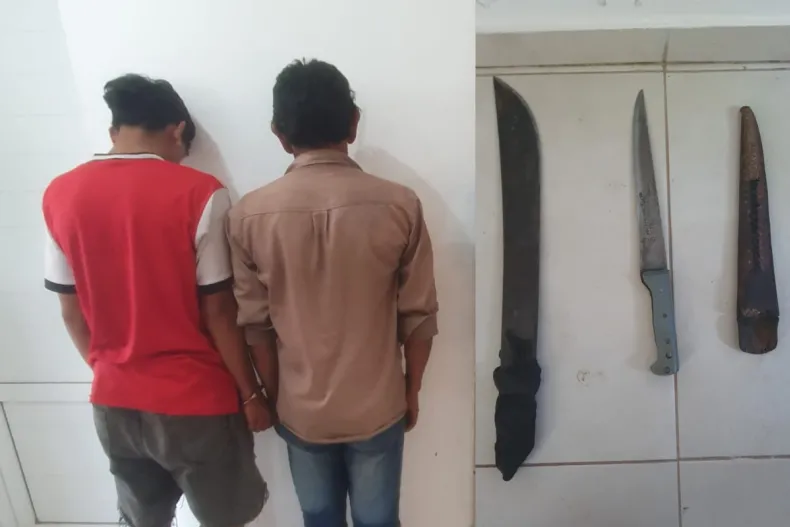 Los agresores fueron identificados por efectivos y luego detenidos, un hombre de 53 años y su hijo de 19 años. Hasta el momento se mantienen alojados en la comisaría local. En el lugar se secuestraron dos cuchillos (uno tipo machete y otro tipo carnicero con funda de cuero), dos gomeras, un trozo de ladrillo, balines y piedras utilizadas como elementos contundentes.