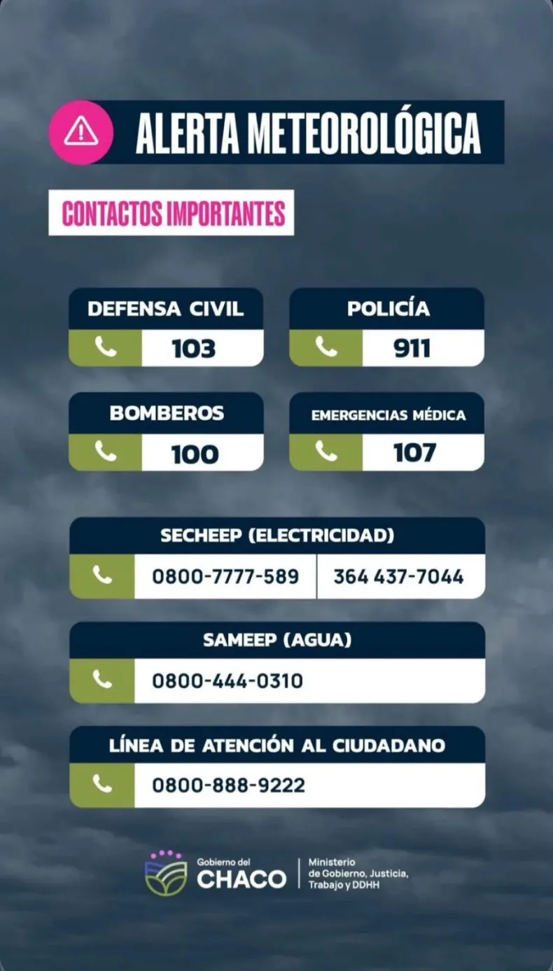 · SECHEEP (electricidad): 0800-7777-589 / WhatsApp 3624-377044 / app oficial.