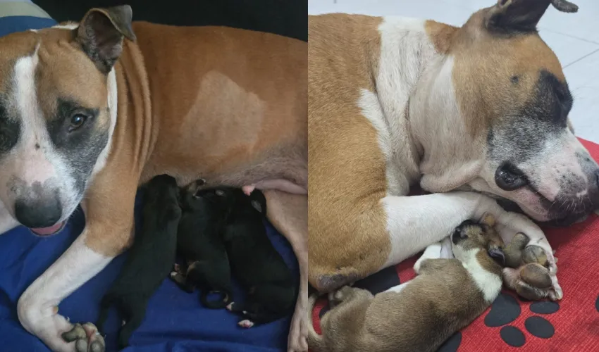 Desde ese momento, Atenea se convirtió en nodriza de los cachorros, a pesar de que todavía se encuentra recuperándose de un cuadro grave y de un marcado deterioro en su salud. Una rescatista de la zona colabora con la atención veterinaria de la perra que fue mamá y comenzó un tratamiento para ayudarla a disminuir la producción de leche cuando sea oportuno.