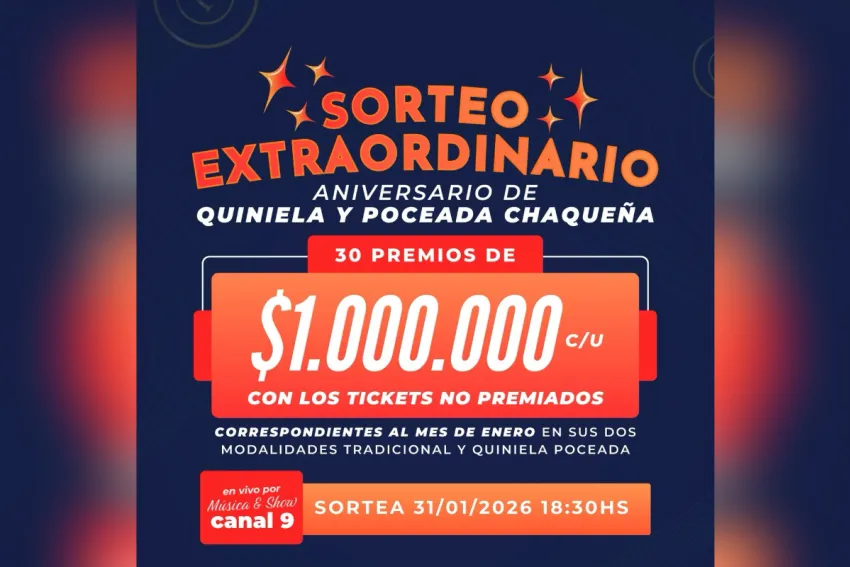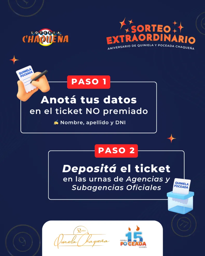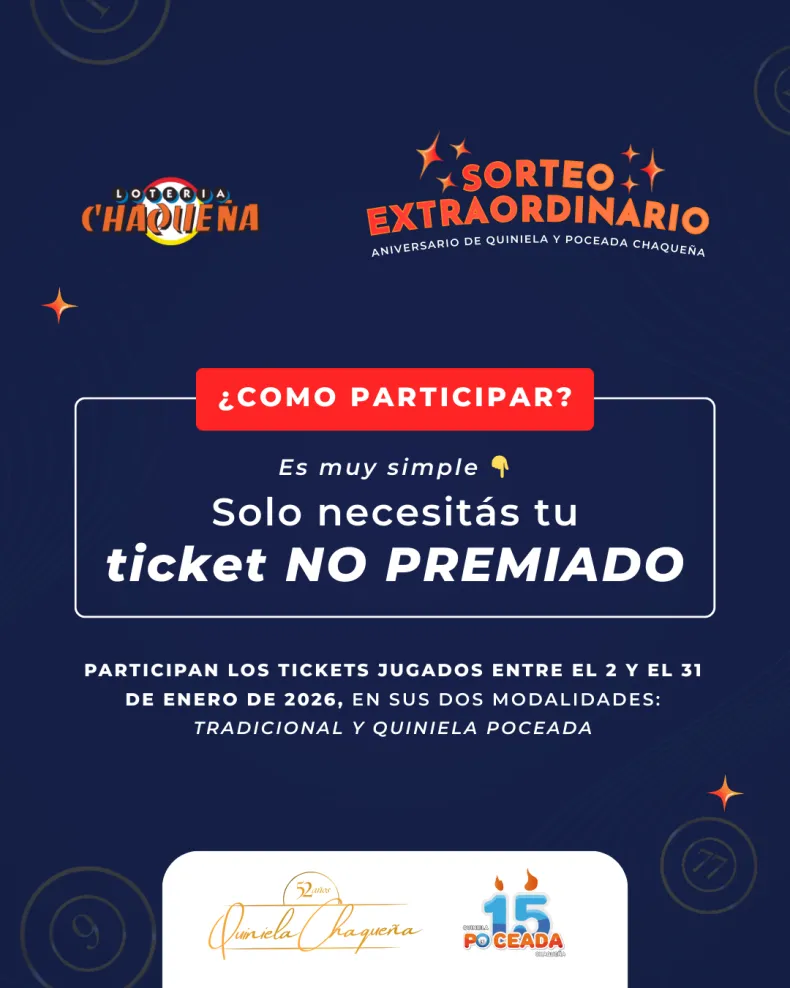 En el marco del 52° aniversario de la Quiniela Oficial y el 15° aniversario de la Poceada Chaqueña, Lotería Chaqueña realizará un Sorteo Estímulo Extraordinario, destinado a premiar a quienes participen con tickets no premiados.