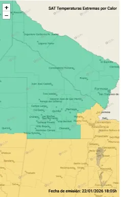 El Servicio Meteorológico Nacional emitió una alerta amarilla por temperaturas extremas de calor para este viernes en distintos departamentos de la provincia del Chaco. Las zonas afectadas son Bermejo, Donovan, Libertad, Primero de Mayo y San Bernardo.