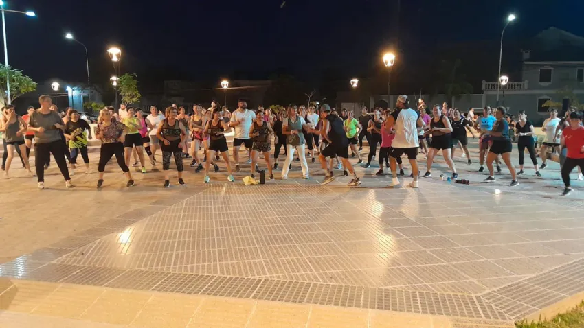 La plaza Raúl Alfonsín se llenó este viernes de ritmo y movimiento con la realización de una nueva Master Class de Zumba, que logró una destacada convocatoria de vecinos que se acercaron a participar de una tarde al aire libre, marcada por la música, la energía y el ejercicio físico.
