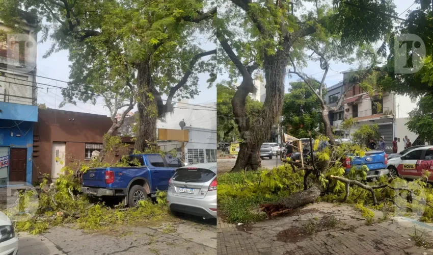 En la mañana de este martes, alrededor de las 8:15, un árbol de gran porte se desplomó en plena vía pública sobre la calle Saavedra al 175, en la ciudad de Resistencia, y terminó cayendo sobre una camioneta Ford Ranger 4x4 que se encontraba estacionada.