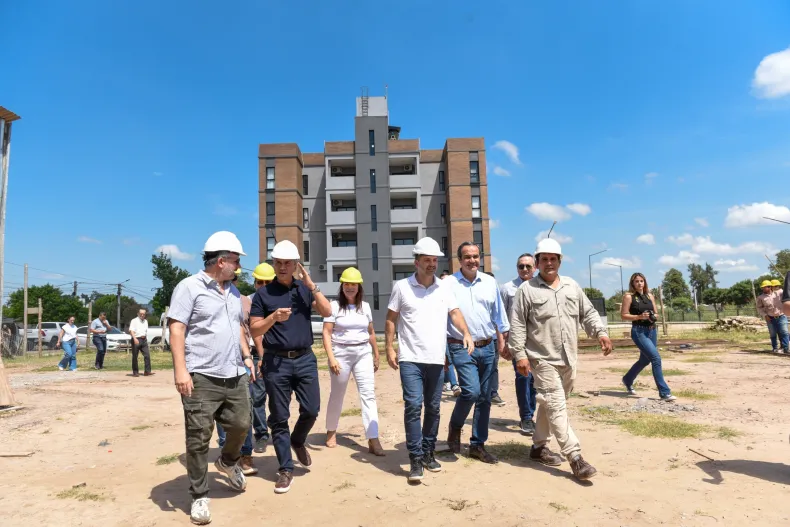 Durante la recorrida, el mandatario provincial estuvo acompañado por el intendente Bruno Cipolini, legisladores provinciales y autoridades del Instituto Provincial de Desarrollo Urbano y Vivienda (IPDUV).