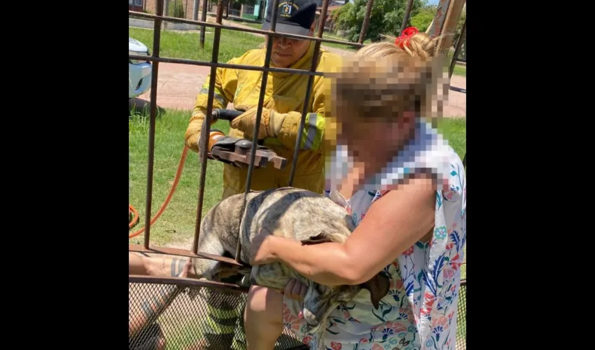 Pasada las 14 horas, tuvo que intervenir el personal de Bomberos de Villa Ángela por un perro atrapado en los barrotes de una reja. Al arribar al lugar, los efectivos constataron la situación y procedieron al rescate del animal mediante el uso de herramientas especiales y equipo multipropósito.