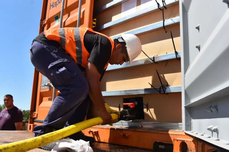 El gobernador Leandro Zdero supervisó este viernes, en el Puerto de Barranqueras, la carga de 110 toneladas de aceite de girasol de producción chaqueña que serán exportadas a España. Se trata de la primera de tres operaciones previstas hasta marzo, consolidando el proceso de reactivación y dinamización de la actividad portuaria provincial.
