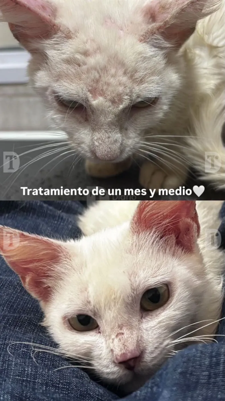 Luego de un mes y medio, "Lucy" ha mejorado muy favorablemente, tal es así, que recuperó gran parte de su pelaje que perdió por su carcinoma en la piel: "Ella está mejorando día a día, ahora sale a jugar a la vereda con mis otros gatitos, ya que mi casa es cerrada y también se puede ver su mejoría en el aspecto físico", relata Anna.