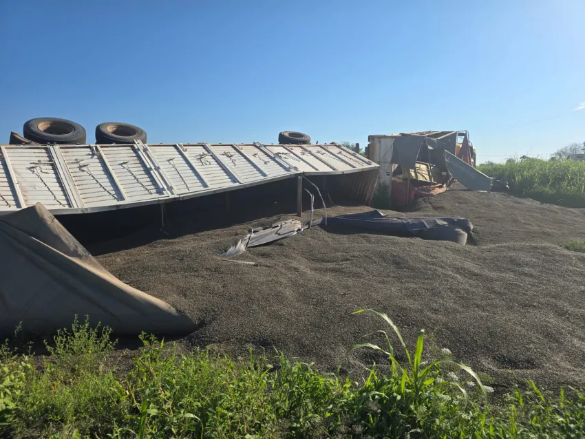 Según informaron fuentes policiales, los uniformados observaron un camión Mercedes Benz, de color amarillo, que transportaba aproximadamente 28.000 kilos de semillas de girasol y que se encontraba completamente volcado sobre la banquina. El rodado era conducido por un hombre de 39 años, acompañado por otro de 33, ambos sin lesiones.