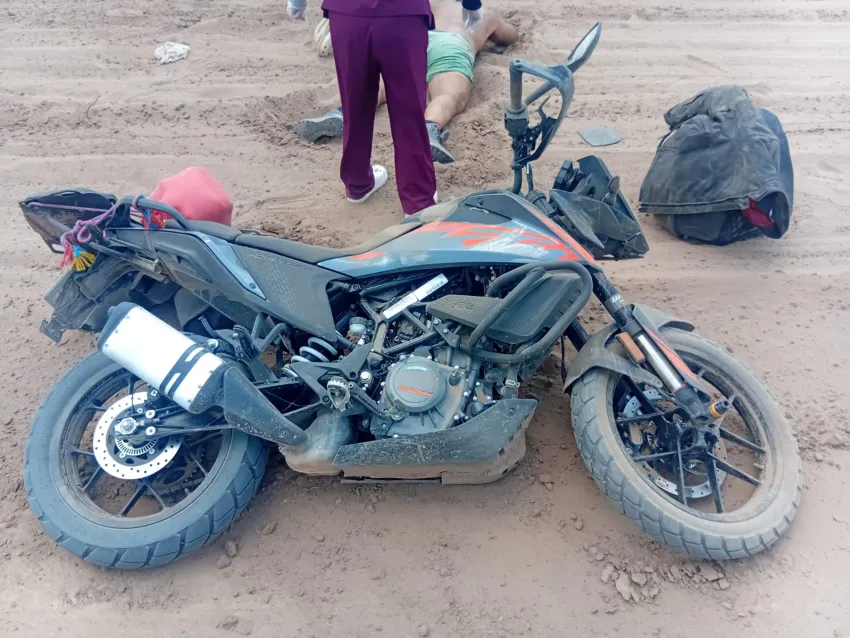 El hecho ocurrió alrededor de las 17:50 en la Picada 8, ubicada a unos 10 kilómetros del casco urbano. Efectivos de la comisaría local acudieron al lugar tras recibir un alerta y, al arribar, encontraron una motocicleta de alta cilindrada marca KTM, modelo Adventure 390cc, de colores negro y naranja, caída sobre el camino rural.