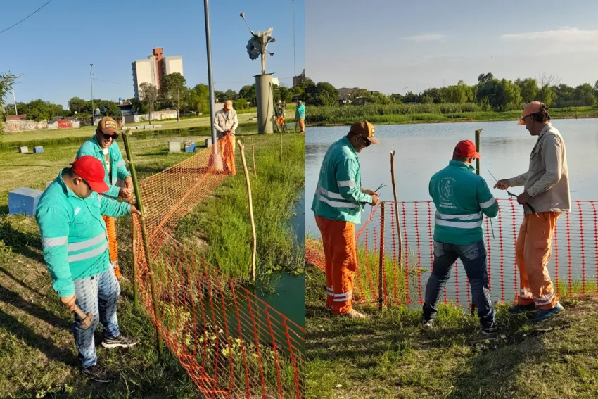 El agua tiene un color verde flúor que indica la posible presencia de cianobacterias; por ello se dispuso un vallado preventivo para evitar que las personas se acerquen y que corran riesgo los animales que suelen tomar de esa agua. En tanto, el espacio verde que rodea a la laguna se encuentra habilitado para su uso, con la precaución de no tocar el agua.