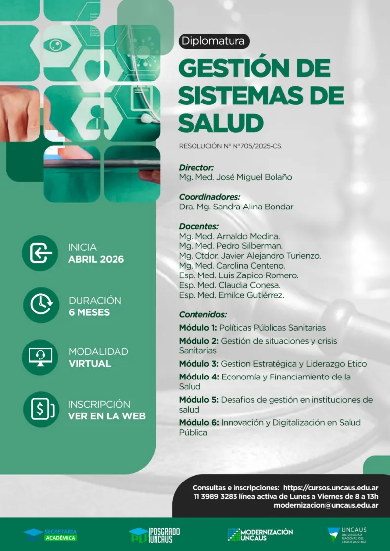 La Universidad Nacional del Chaco Austral (UNCAUS) abrió las inscripciones para la Diplomatura en Gestión de Sistemas de Salud, una nueva propuesta académica impulsada desde sus áreas de Diplomaturas y Formación Continua.