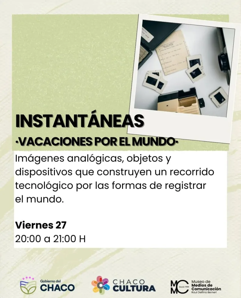En el mismo lugar, el viernes 27 de febrero de 20 a 21 se desarrollará la muestra "Instantáneas", que recupera la experiencia de la imagen analógica a través de la proyección de diapositivas de viajes por distintos lugares del mundo. La entrada es libre y gratuita.