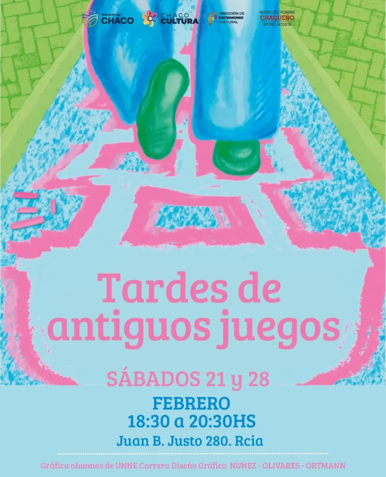 La agenda continúa en el Museo del Hombre Chaqueño, en Juan B. Justo 280, donde los sábados 21 y 28 de febrero habrá una "Tarde de antiguos juegos". De 18.30 a 20.30, se propone una tarde de experiencias con los juegos tradicionales, indígenas, criollos y de inmigrantes. Está dirigido a niños de 6 a 12 años y el acceso es libre y gratuito.