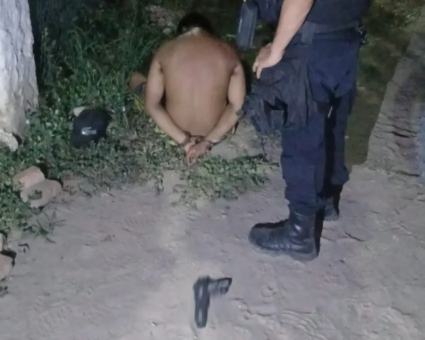 Los agentes ingresaron al domicilio con autorización del propietario y, en la parte trasera del inmueble, observaron al sospechoso que intentaba escapar. Tras una breve intervención, fue demorado en el lugar.