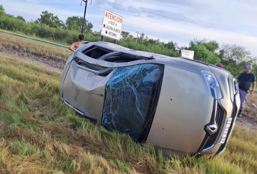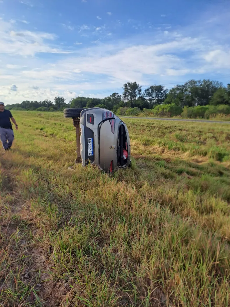 Un grave accidente de tránsito se registró este domingo, cerca de las 8, sobre el kilómetro 45 de la Ruta Nacional N° 16. Un automóvil Renault Sandero de color beige, terminó volcado sobre su lateral derecho con importantes daños materiales tras una maniobra brusca en la calzada.
